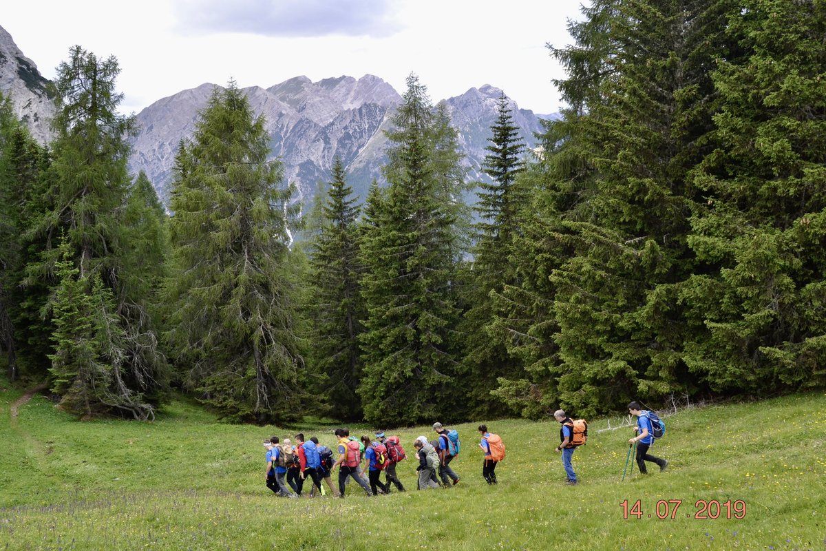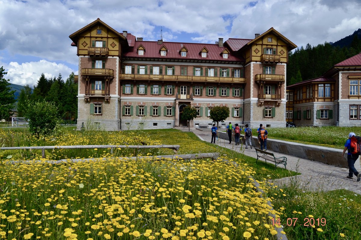 Autobus da 84 posti con 83 partecipanti. Arrivati a Dobbiaco, non avendo trovato posto per dormire nei rifugi in quota, sbarcano i ragazzi del gruppo Avanzato che dormiranno presso l'ex Grand Hotel, oggi Centro Culturale.